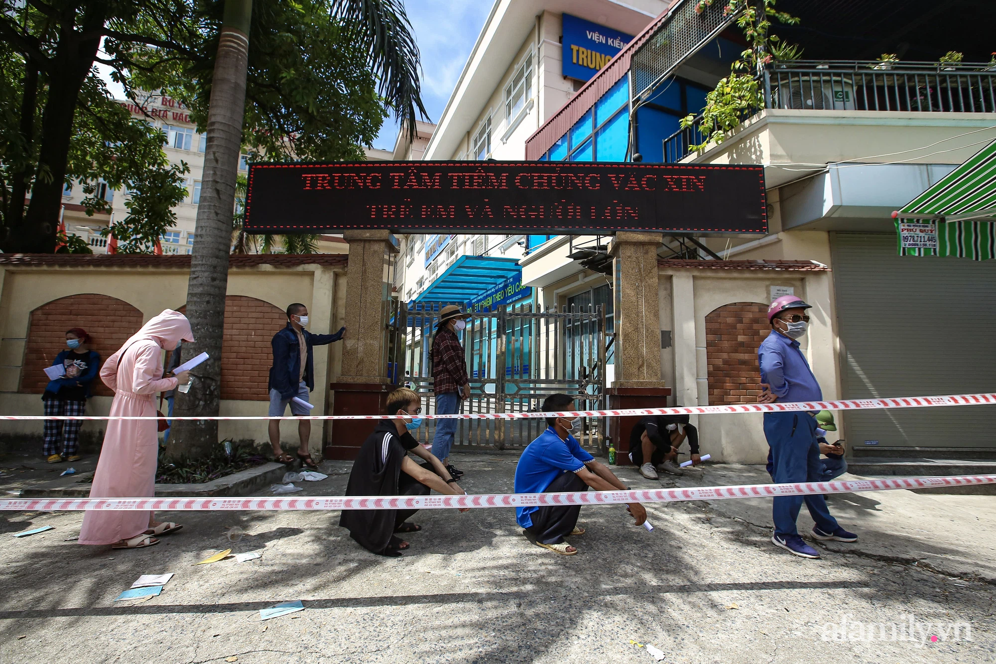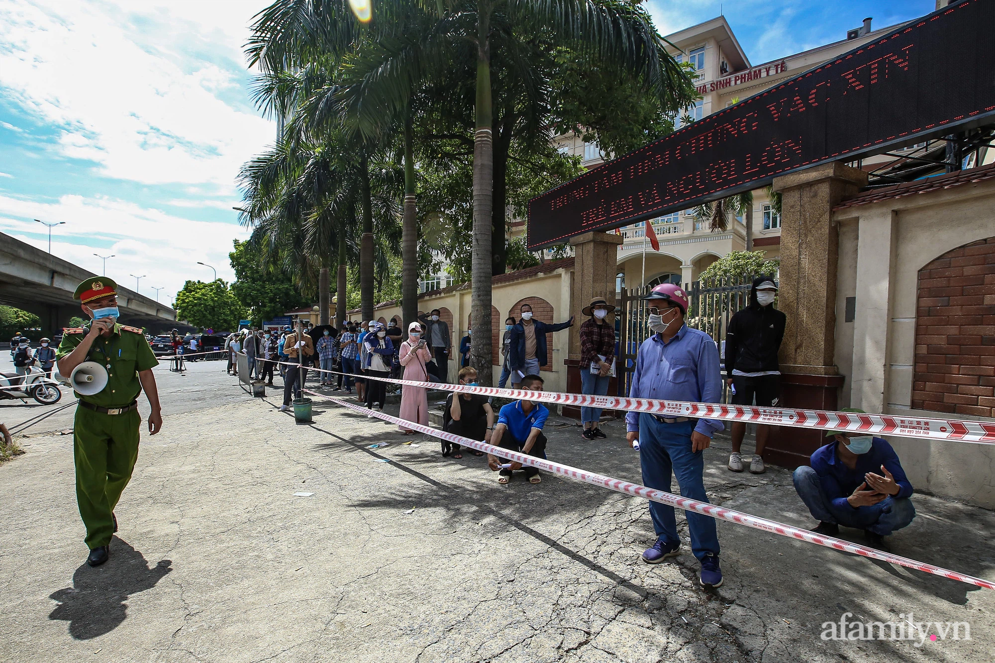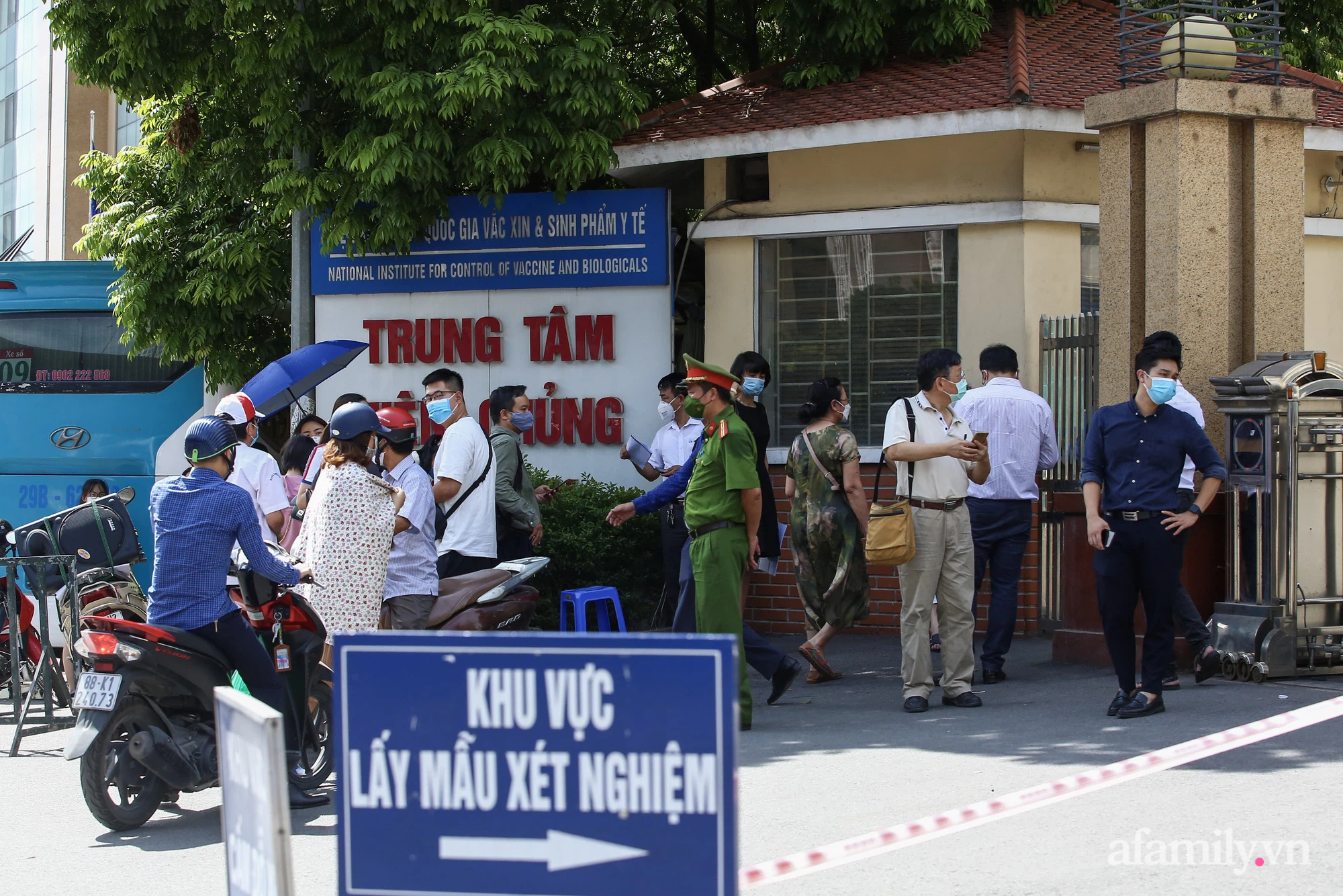 Để đảm bảo khoảng cách phòng chống dịch, ngay từ đầu giờ chiều, lực lượng Công an phường Đại Kim, Công an quận Hoàng Mai và lực lượng bảo vệ Viện Kiểm định Quốc gia Vắc xin và Sinh phẩm y tế đã căng dây, phát số thứ tự cho những trường hợp đến trước.
