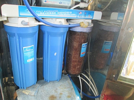 Bộ lọc của máy lọc nước đen xì, một tuần thay một lần. Ảnh: Ngọc Thi |