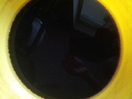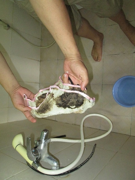 Chứng minh với PV, anh mở miếng vải ra, toàn bộ đã bị biến đổi thành màu đen, lớp cặn bám thành từng mảng.