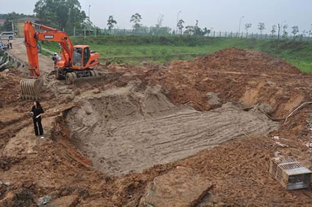Ông Đỗ Hoan (52 tuổi, người dân sống ở gần khu vực) cho hay, hiện tại một phần đường Đại lộ Thăng Long bị sụt lún, nước ở đường ống vỡ ra chảy xuống ruộng của người dân. Tại khu vực đường ống gặp sự cố, có nhiều máy xúc đang hoạt động.