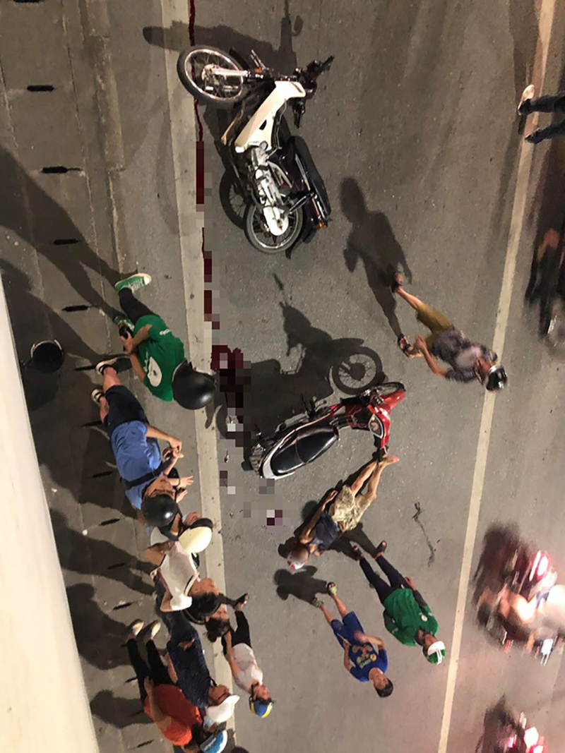 Hiện trường vụ việc cho thấy nam thanh niên bị thương ở vùng đầu, chảy rất nhiều máu. Sự việc xảy ra khiến giao thông tại khu vực này ùn tắc, nhiều người dân dừng lại quan sát làm ảnh hưởng đến việc lưu hành giao thông.