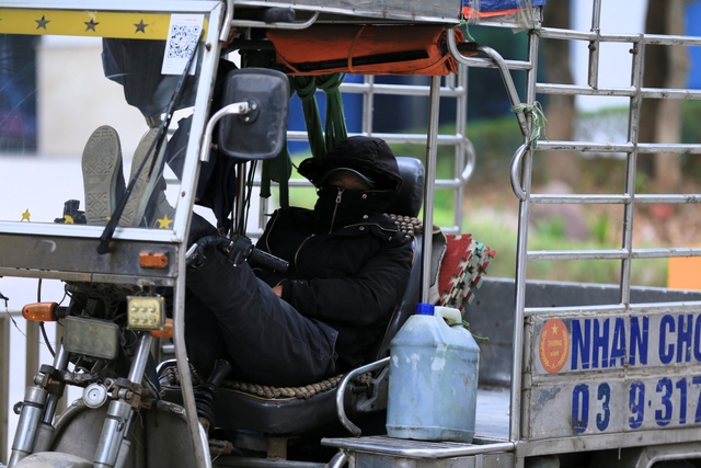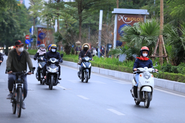 Sáng nay (11/1), thời tiết Hà Nội rét đậm, người dân khoác áo ấm, đội mũ, đeo khẩu trang hoặc bịt kín mít đi ngoài trời.