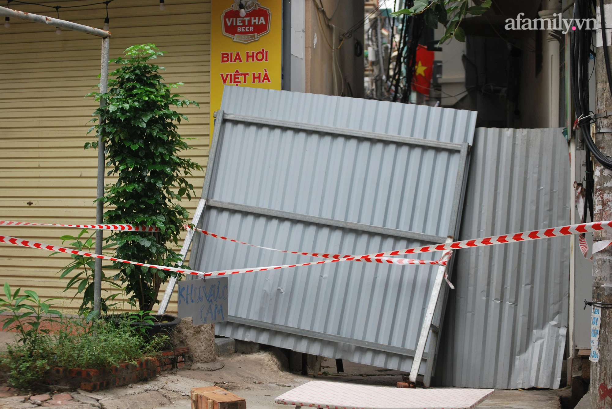 Hiện, ngõ 102 lối đi vào nhà bệnh nhân đã được tạm thời phong tỏa, lập hàng rào cứng và treo biển cảnh báo.