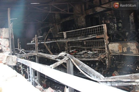 Hình ảnh hàng hóa bị cháy rụi bên trong cửa hàng. |