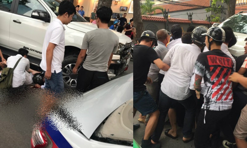 ![]() Chiếc xe bán tải đè lên nhiều người trên đường. ![]() Người dân giúp sức nhấc chiếc xe ra khỏi người các nạn nhân. |
