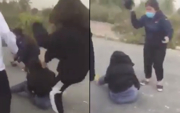 Dù có nhiều người chứng kiến xung quanh và cả tiếng nói của nam giới nhưng không ai vào can ngăn. Cô gái bị nhiều người đánh hội đồng nên không dám chống cự.