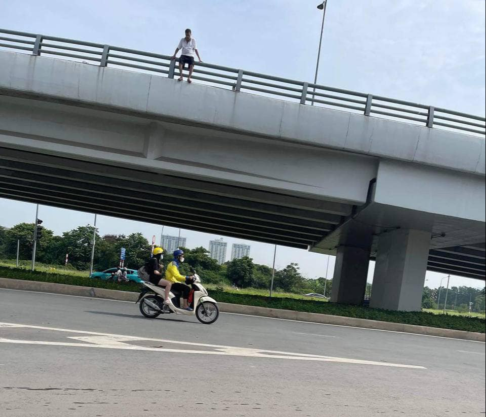 Sáng 17/6, người dân đi đường chứng kiến một người đàn ông lên cầu vượt đi vào khu đô thị thuộc địa bàn phường Tây Mỗ, quận Nam Từ Liêm sau đó nhảy xuống đường.