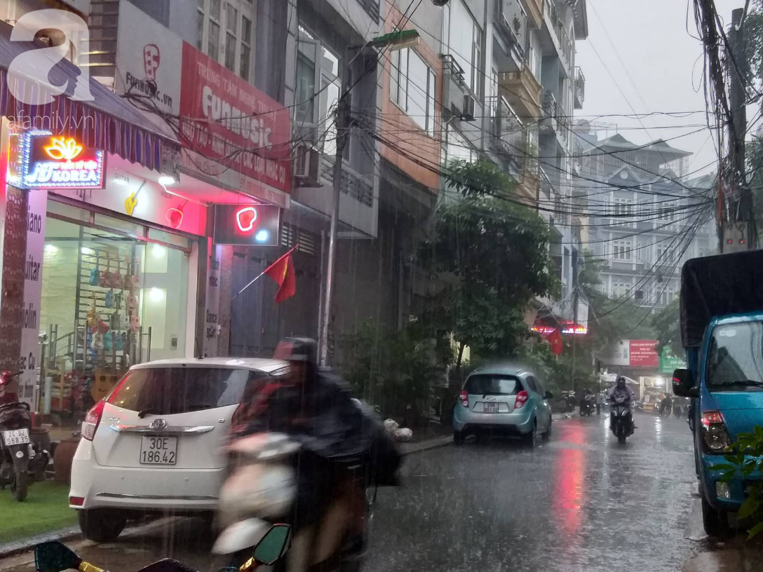 Sau nhiều ngày nắng nóng, cơn mưa lớn xảy ra vào giờ tan tầm đã giúp thời tiết Thủ đô Hà Nội trở nên mát mẻ, một số khu vực quận nội thành có khả năng ngập úng nhẹ.