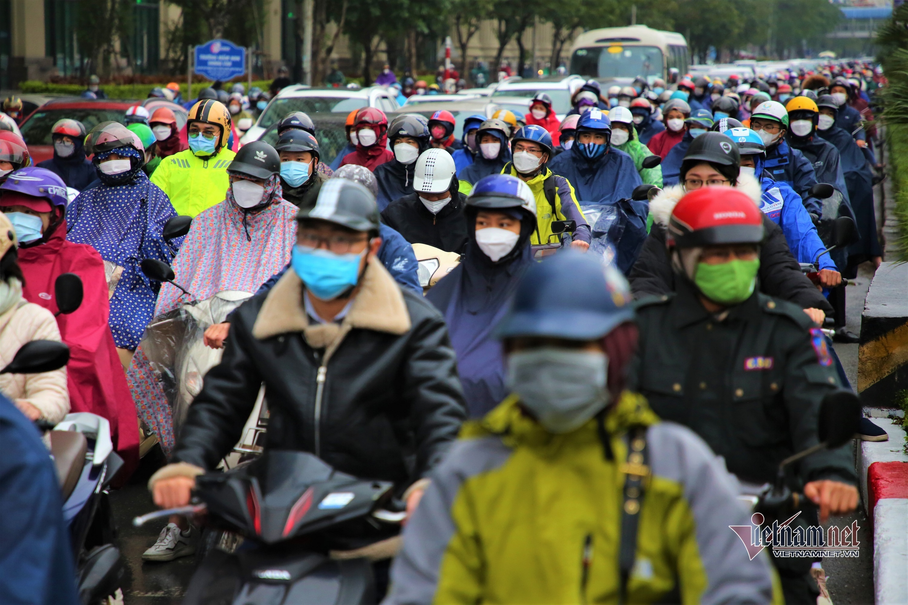 Sáng 8/2, do ảnh hưởng bởi không khí lạnh tăng cường, Hà Nội có mưa rét. Giờ cao điểm buổi sáng, nhiều tuyến đường xảy ra ùn tắc. Đặc biệt, tại tuyến đường Tố Hữu, Lê Văn Lương, dòng phương tiện phải nhích từng mét.
