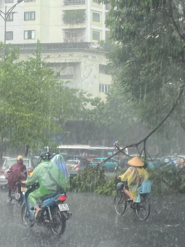 Đặc biệt trên một vài tuyến phố như Nguyễn Trãi, Láng Hạ, Huỳnh Thúc Kháng xảy ra tình trạng cây đổ, gãy cành. Mưa lớn còn gây ngập nhẹ ở một vài tuyến phố.