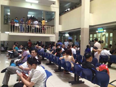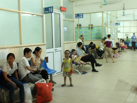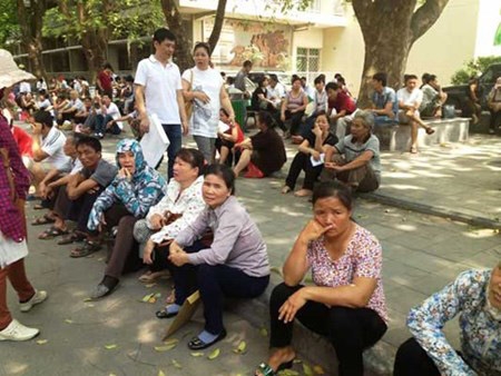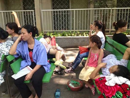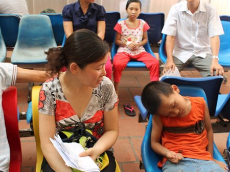 Quá mệt khỏi khi phải chờ đợi khám bệnh trong những ngày nắng nóng. |