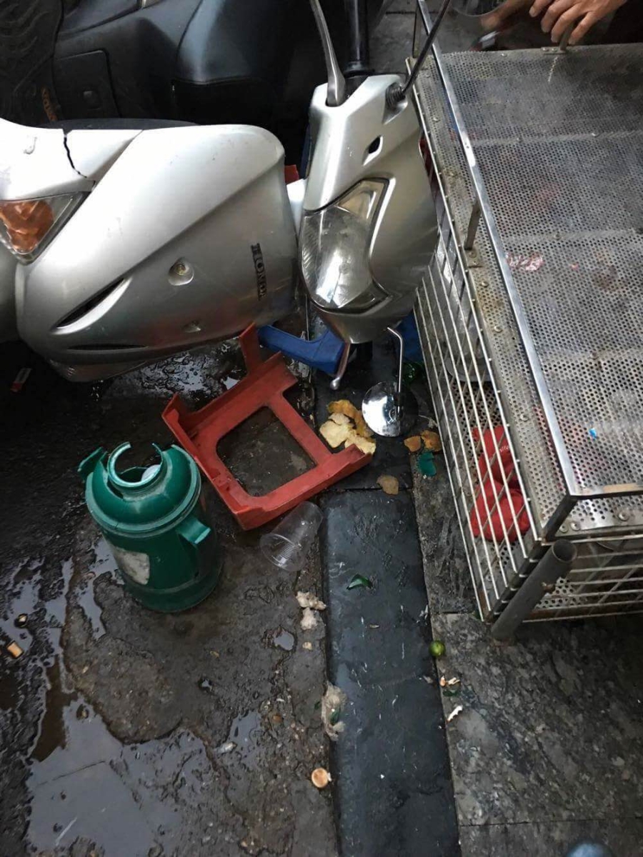 Thời điểm trên, ô tô BKS 29A – 060XX đang lưu thông trên phố Cầu Đông bất ngờ mất lái lao thẳng vào một chiếc xe máy đang lưu thông trên đường. Chiếc xe ô tô chỉ chịu dừng lại khi đâm vào một hàng quán bên đường.