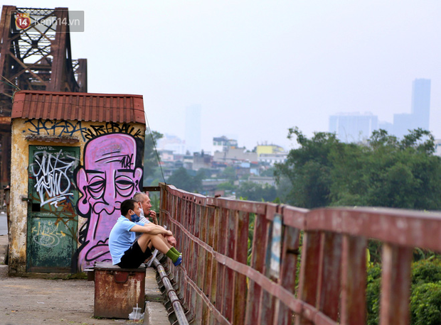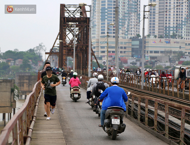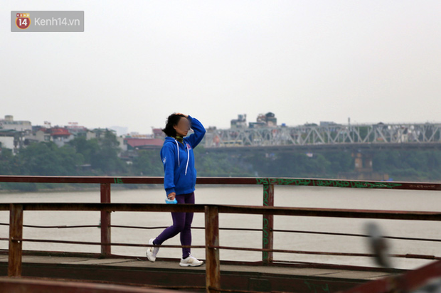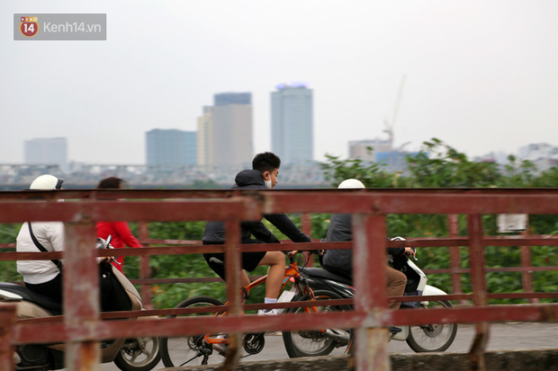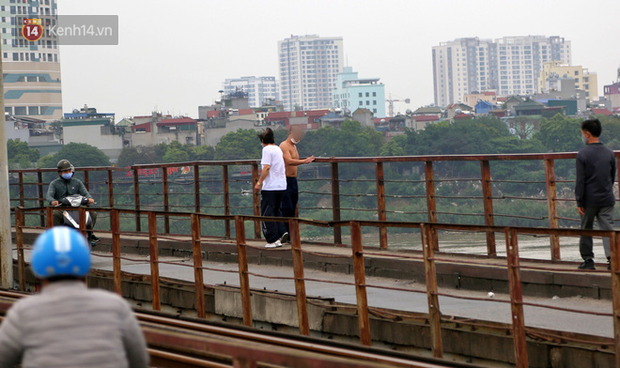 Phía trên cầu cũng có nhiều người dân đi dạo, tập thể dục dù lượng phương tiện tham gia giao thông qua đây vô cùng đông đúc. Nhiều người dân cũng không đeo khẩu trang để đảm bảo an toàn trước dịch bệnh COVID-19.