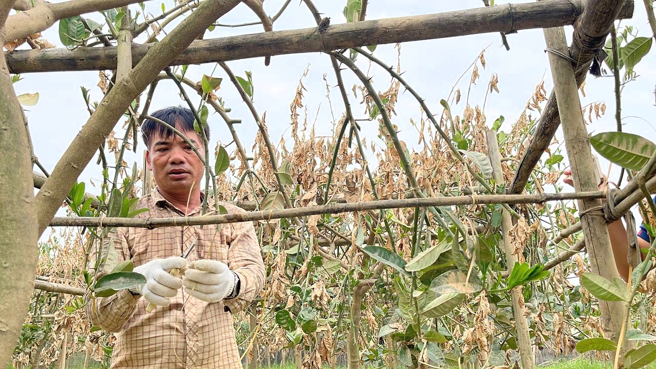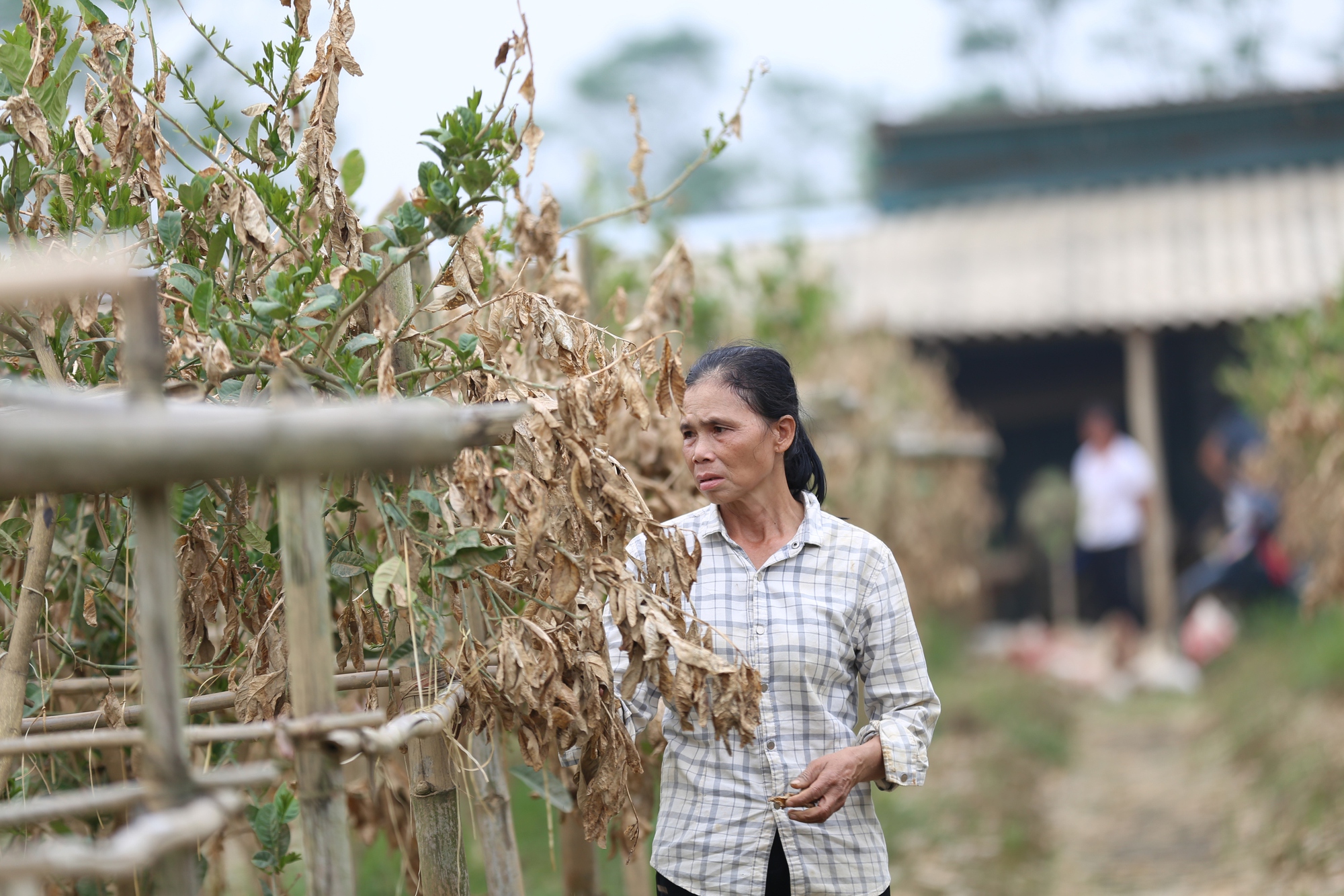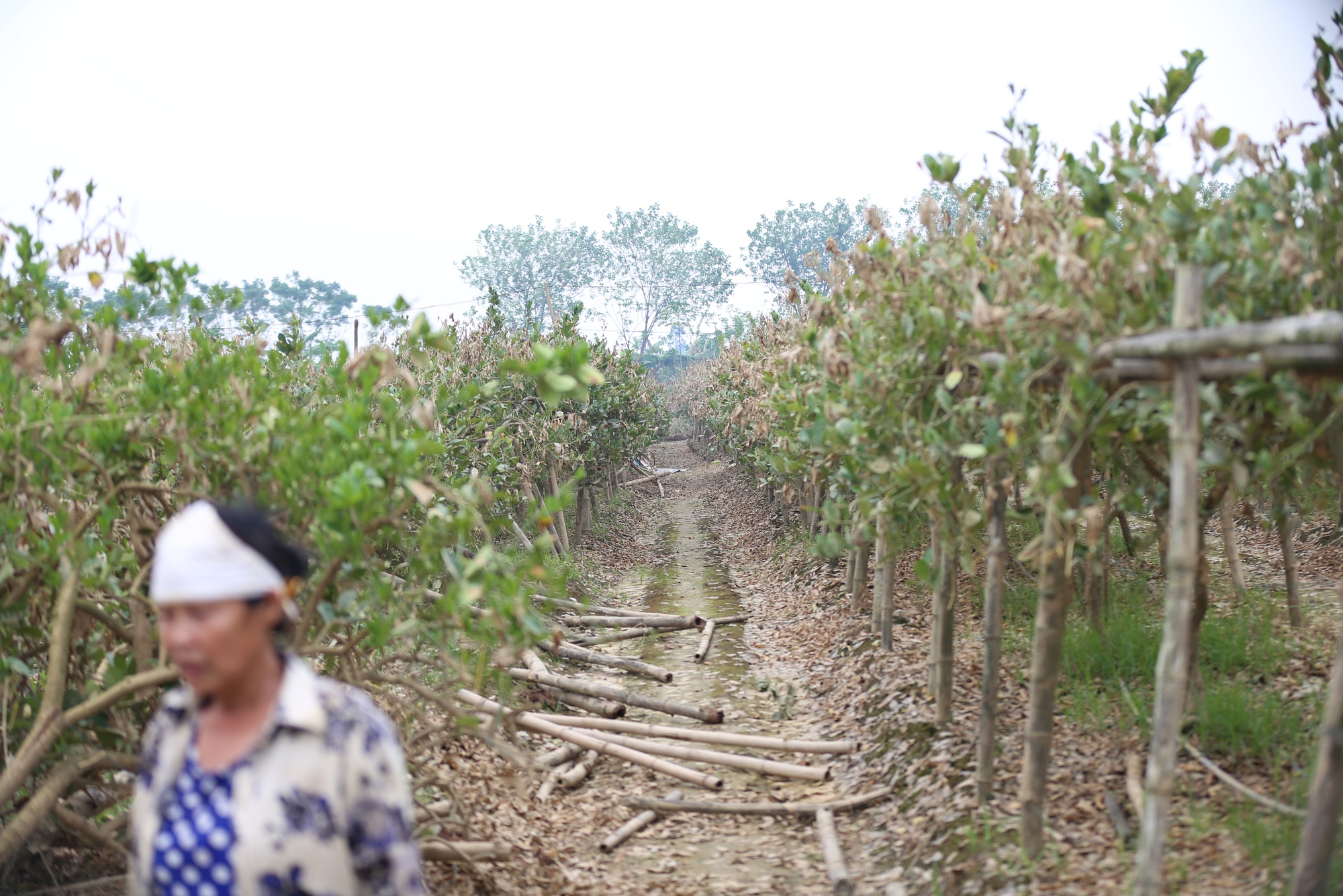 "Vườn cây phật thủ của chúng tôi trồng mới được 2 năm. Đây là năm đầu tiên cho quả, chúng tôi chờ đến tết để bán nhưng giờ mất hết rồi", anh Dũng thở dài nói.