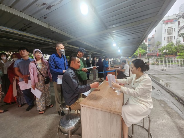 Đến 7h30, bảo vệ mở cửa, người dân xếp hàng đi vào. Trung tâm cử cán bộ kiểm tra hồ sơ, giấy tờ của từng người. Trường hợp nào đủ điều kiện sẽ tiếp tục vào trong sảnh chờ lấy số thứ tự.