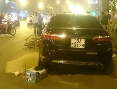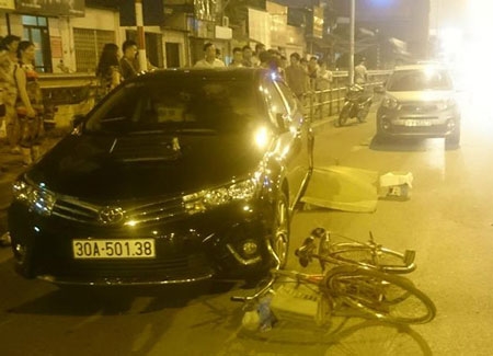 Cú va chạm khiến người đi xe đạp va chạm tiếp với chiếc xe Camry BKS 30A - 501.38 đang đi với tốc độ chậm gần lề đường bên phải.