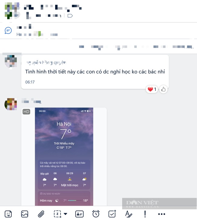 "Nhiệt độ xuống 7 độ C, các con có đi học không lớp mình nhỉ?"; "Tình hình thời tiết này các con có được nghỉ học không các bác nhỉ?"; "Chờ thông tin con đi học hay không mà bố mẹ thấp thỏm"... hàng loạt câu hỏi được đặt ra từ tối 21/12 cho đến sáng nay ở trong nhóm phụ huynh cũng như trên mạng xã hội.