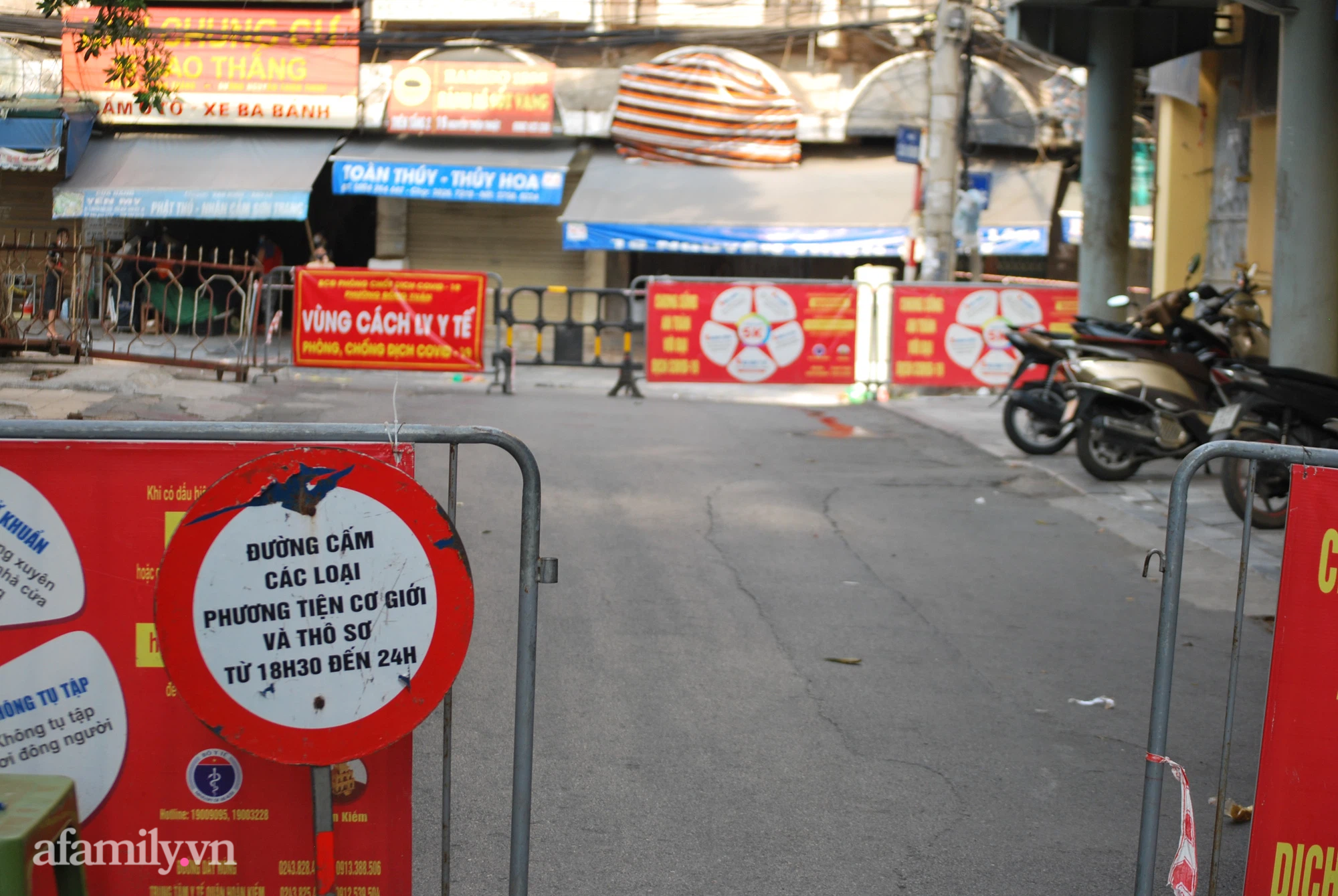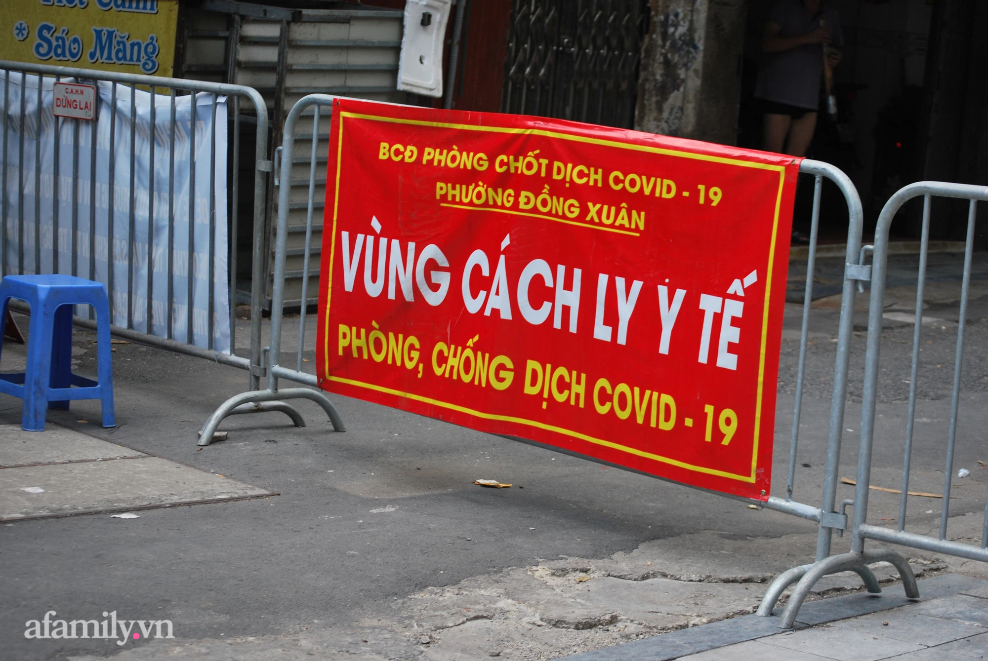 Ngày 21/8, theo ghi nhận của chúng tôi, toàn bộ hai đầu phố Thanh Hà, phường Đồng Xuân đã được cơ quan chức năng lập chốt phong tỏa cách ly, thời hạn 14 ngày. Tại đây có 90 hộ dân.