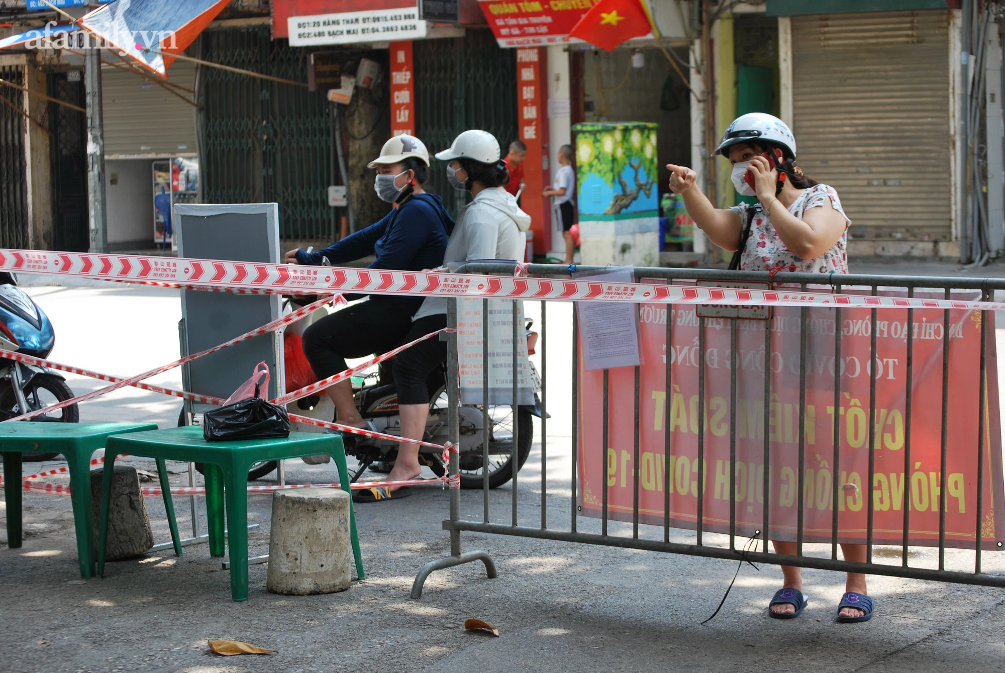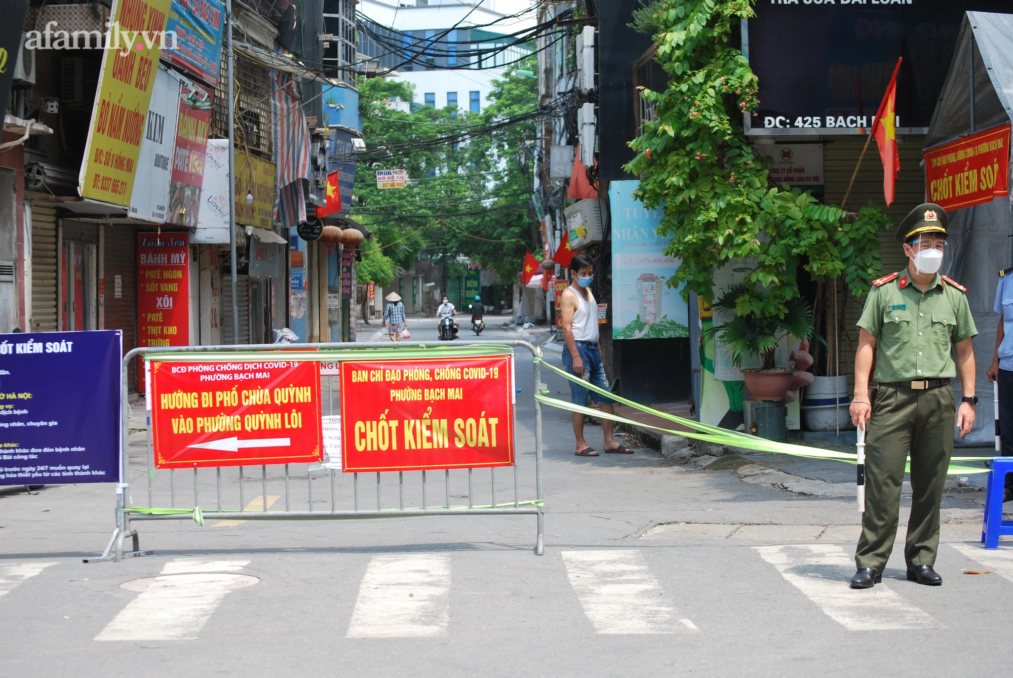 Còn tại phố Hồng Mai, tuy nhà bệnh nhân ở trong ngõ sâu nhưng cũng đã được lập chốt kiểm soát dịch Covid-19, cán bộ túc trực 24/24h từ đầu phố. Tất cả các phương tiện ra vào đều phải khai báo, công dân trong khu vực phải có giấy xác nhận.