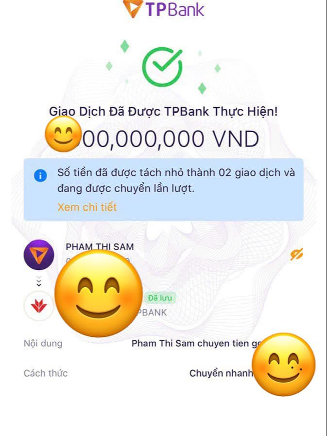 Lo lắng vì số tiền không hề nhỏ, chị Sâm thông báo với ngân hàng thụ hưởng. Qua quá trình kết nối, chị Sâm liên hệ với bà Thanh. Hai bên cũng thực hiện đối chiếu xác nhận thông tin tại cơ quan công an. Lực lượng chức năng cũng đã hướng dẫn hai bên hoàn thiện các thủ tục cần thiết để nhận lại số tiền bị chuyển nhầm, đảm bảo quyền lợi của chị một cách nhanh chóng và đúng quy định của pháp luật.