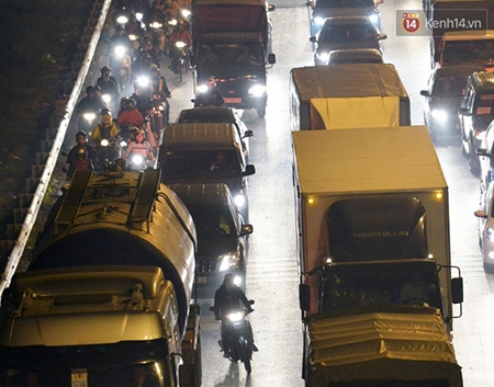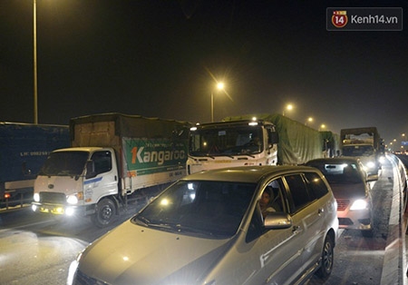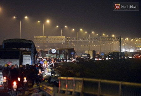 Anh Tân, một lái xe 7 chỗ chỉ biết hóng lên phía trước xem dòng xe đã thoáng chưa, anh cho biết: "Từ Lạng Sơn về qua khu vực soát vé cũ cầu Phù Đổng, xe tôi chỉ có thể nhích từng cm một để về Thủ đô. Hơn 1 giờ đồng hồ từ 17h30 tới giờ xe di chuyển không được bao xa". |