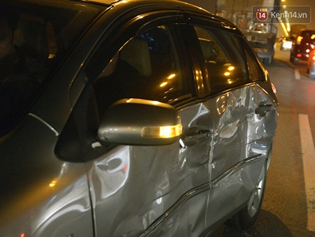 Đến 19h, 2 xe trong vụ va chạm đã được đi chuyển về cơ quan công an nhưng vụ việc khiến giao thông tại đây vẫn ùn tắc nghiêm trọng. |