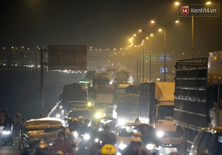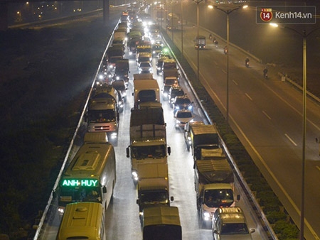 Đoạn đường hướng về cầu Thanh Trì chật cứng ô tô, xe máy. |