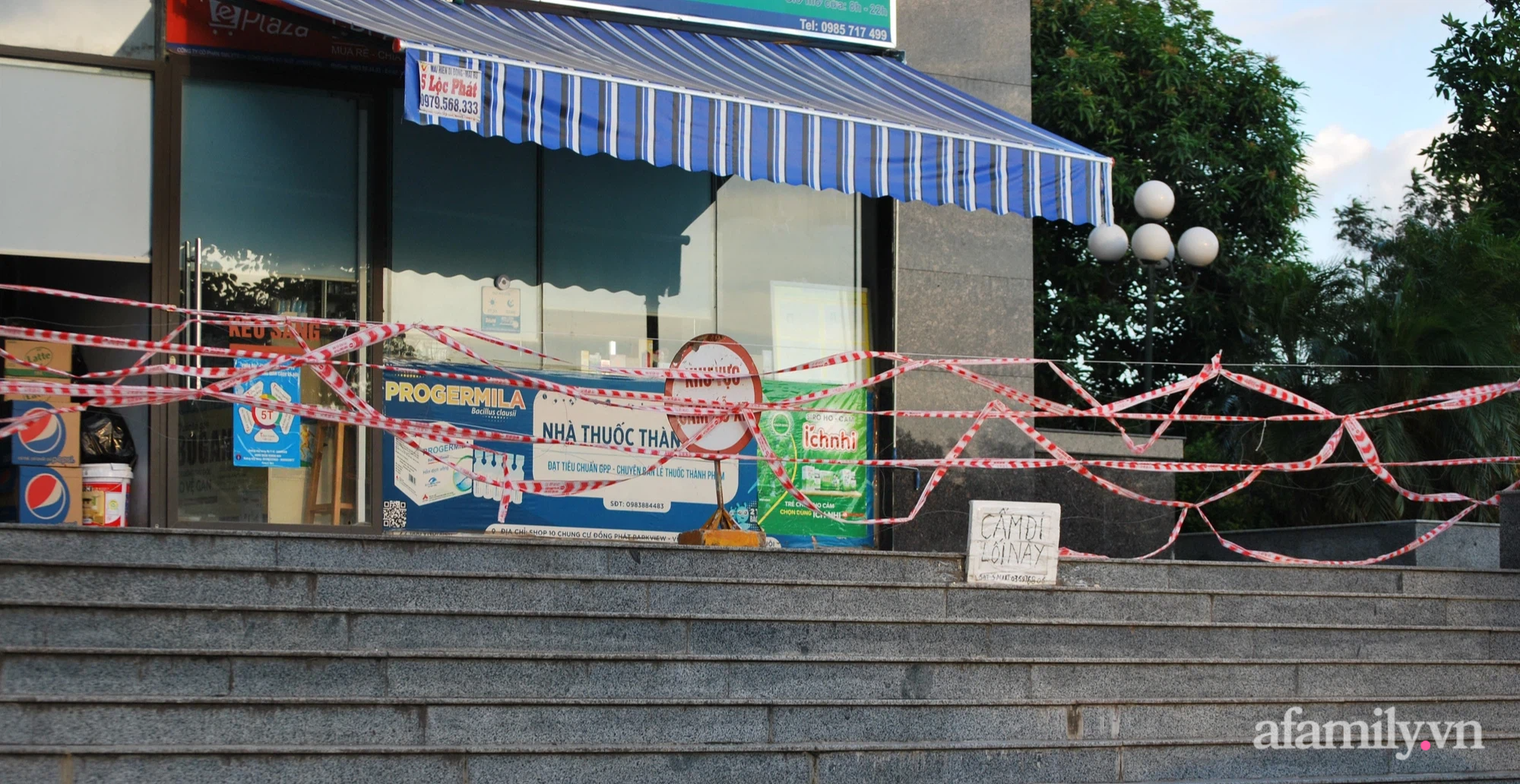 Hàng rào chắn đã được lập tại các sảnh ra vào của tòa nhà chung cư, người dân không được ra vào để đảm bảo công tác phòng chống dịch hiệu quả.
