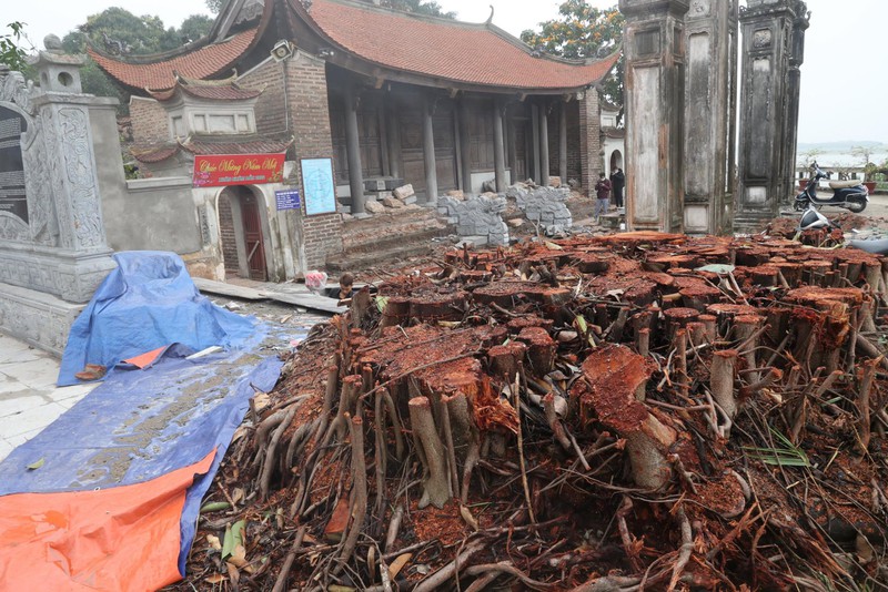 Về vụ việc chặt hạ cây đa cổ, ông Thìn cho biết, cây này phát triển rất tốt, nhưng về phong thuỷ thì không đạt. Bên cạnh đó, lối thoát nước của nhà đình ra sông Hồng đi qua gốc cây đa, hàng năm cây bị nghiêng từ 5 đến 10cm, do đó được đề nghị cắt bỏ.
