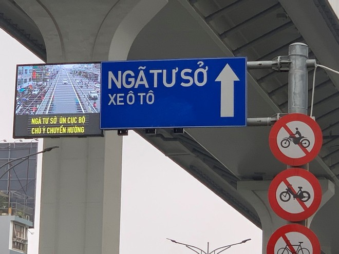 Đến nay, các biển báo điện tử này đang dần phát huy tác dụng. Cầu vượt Thái Hà - Chùa Bộc là địa điểm đầu tiên được Sở GTVT Hà Nội thí điểm lắp đặt biển cảnh báo từ năm 2022.
