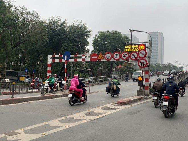 Đại diện Ban Duy tu các công trình hạ tầng giao thông (Sở GTVT Hà Nội) cho biết, cầu vượt này trước đây đã nhiều lần bị xe khách, xe tải có chiều cao vượt quá quy định… cố tình di chuyển lên cầu, làm sập khung hạn chế, gây ùn tắc và mất an toàn giao thông. Từ ngày lắp biển cảnh báo, vi phạm đã giảm nhiều.