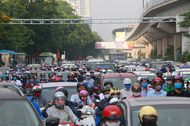 Tuyến đường Nguyễn Xiển (từ đoạn cửa Trường ĐH Thăng Long đến nút giao Nguyễn Trãi dẫn vào nội đô) luôn trong cảnh chật cứng. Ô tô xếp hàng 3, hàng 4 lấn hết đường khiến người điều khiển xe máy phải leo lên vỉa hè. Đường trên cao cũng ùn tắc, tài xế phải nhích từng mét ở lối xuống. Tại Ngã Tư Sở, tình trạng ùn tắc diễn ra cả trên cầu vượt lẫn dưới mặt đường.