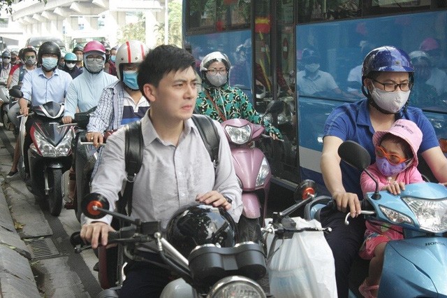 Từ 7h30, rất nhiều tuyến đường đã ùn tắc, nhiều ngã tư rối loạn khi học sinh THCS, THPT và sinh viên đại học trở lại trường sau thời gian nghỉ dài vì dịch COVID-19.