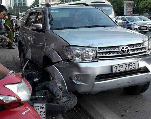 Ghi nhận tại hiện trường, chiếc xe Fortuner trên nghi bị nổ lốp ở bánh sau bên phải. Một xe máy nằm gọn trong gầm xe, nhiều xe máy khác bị đâm văng ra xa và hư hỏng nặng.