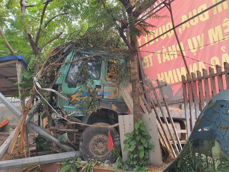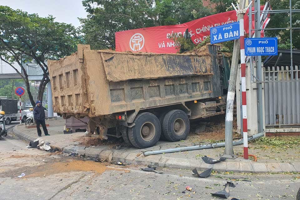 Theo một người người dân sinh sống gần hiện trường cho biết, rạng sáng cùng ngày chị nghe có tiếng động lớn. "Khoảng 5h sáng, chồng tôi dậy thì gọi tôi chạy qua xem. Khi đó, tôi thấy nhiều mảnh vụn trên đường, xe ben đã húc đổ cả cái cây to cạnh trường tiểu học lẫn cột đèn giao thông”, nhân chứng nói.