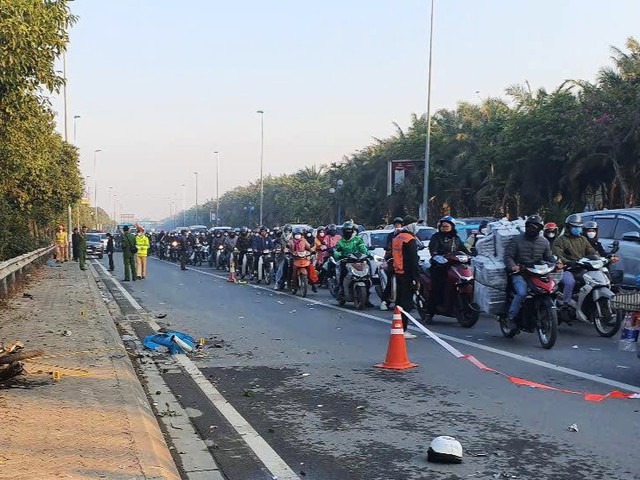 Vụ tai nạn khiến giao thông bị ùn ứ kéo dài trên đường Võ Nguyên Giáp, hướng đi nội thành.