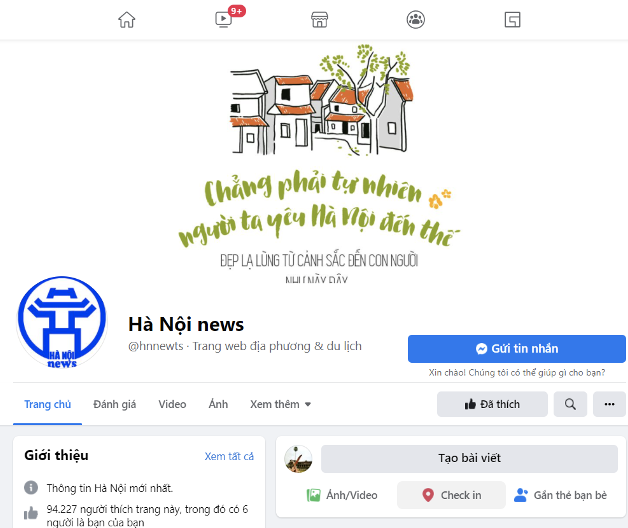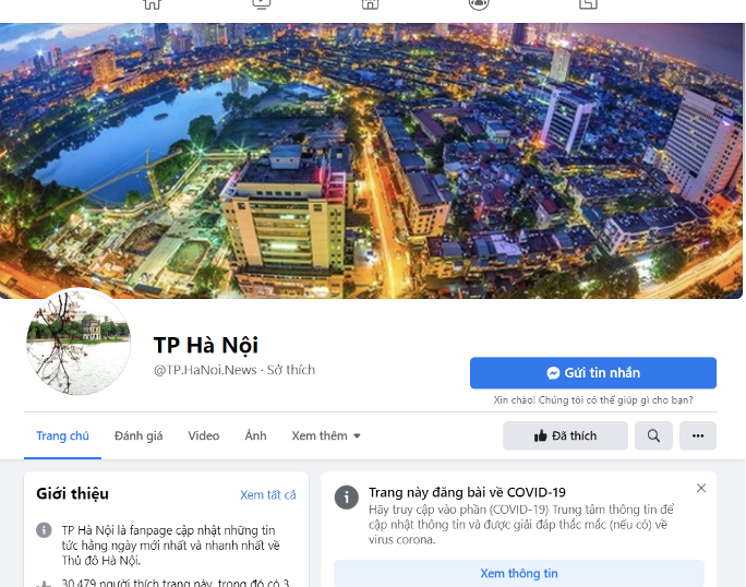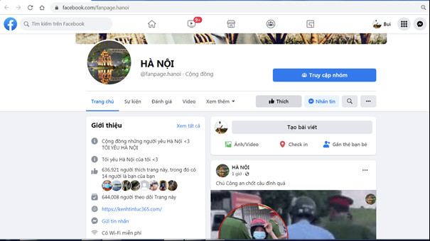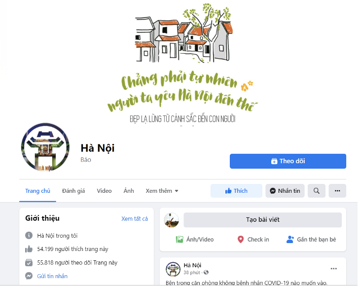 A. Trang fanpage chính thức của Thủ đô Hà Nội