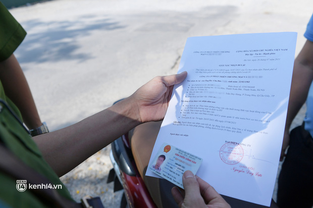 Để đảm bảo rà soát, kiểm soát chặt chẽ các trường hợp ra ngoài không thực sự cần thiết sau khi Hà Nội áp dụng Chỉ thị 16 của Thủ tướng Chính phủ (từ 6h ngày 24/7), lực lượng chức năng đã yêu cầu người đi đường xuất trình "Giấy xác nhận đi lại do yêu cầu công việc".