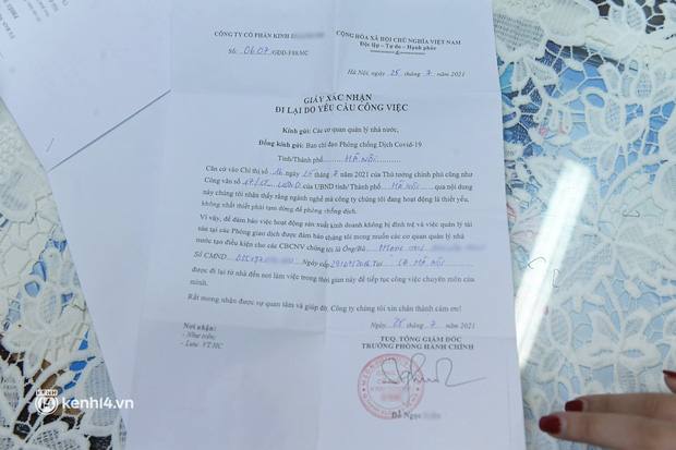 Tuy nhiên, theo ghi nhận của phóng viên cùng tổ công tác của Công an phường Láng Thượng (Đống Đa, Hà Nội) trong chiều 26/7 cho thấy, một số đơn vị không nằm trong danh mục thiết yếu cũng cấp giấy xác nhận cho nhân viên.