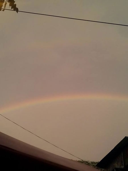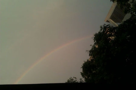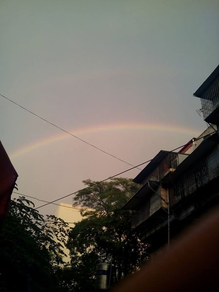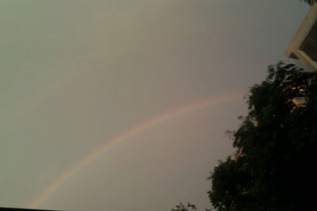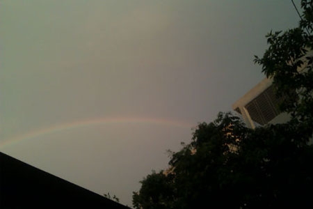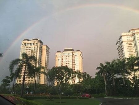 | Xuất hiện hai dải cầu vồng, nhưng do trời nhiều mây nên người dân không được mãn nhãn với hiện tượng thiên nhiên kỳ thú này. |