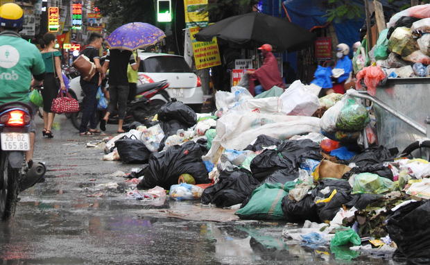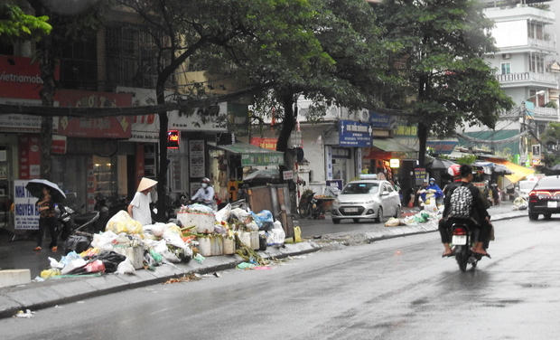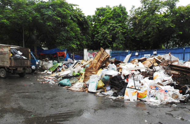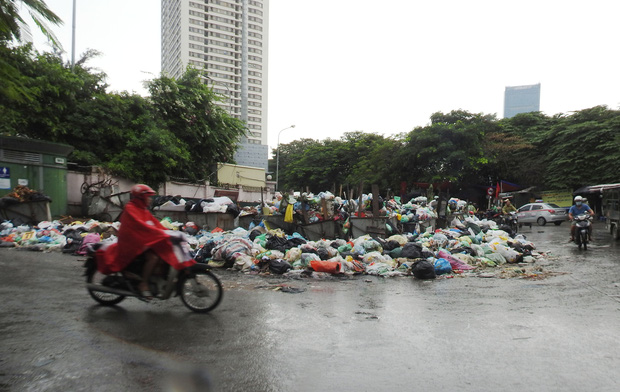 Đặc biệt, tại khu vực sau bến xe Mỹ Đình, một điểm tập kết tạm thời chứa vài chục tấn được để ngay dưới lòng đường. Theo quan sát, đây là khu vực đông dân cư, giao thông đi lại gặp khó khăn, thời gian này Hà Nội cũng thường xuyên xuất hiện những cơn mưa khiến cho rác thải bốc mùi nồng nặc.