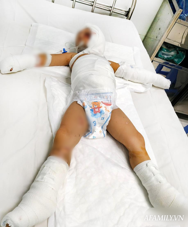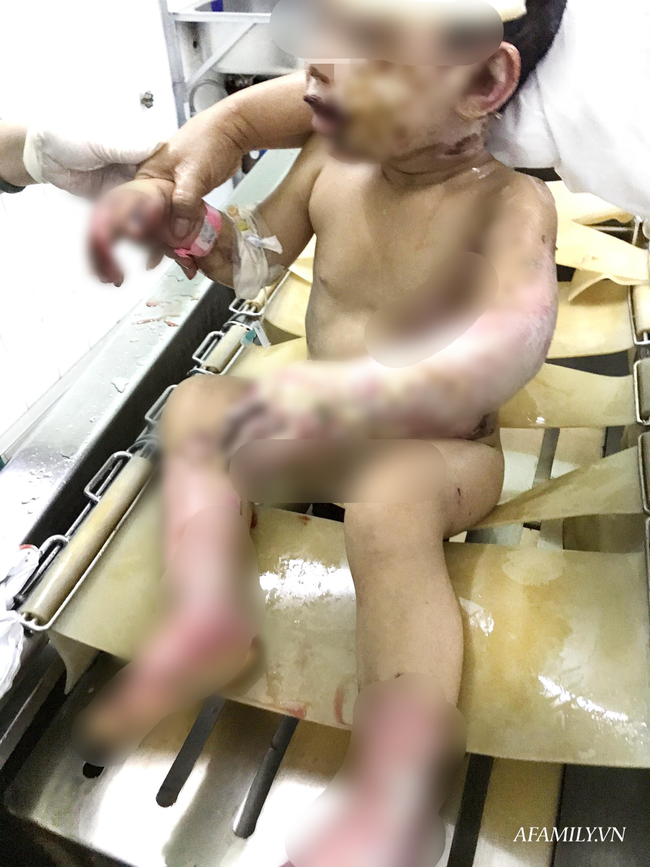 Riêng bé N.T.C. (3 tuổi) thì không may mắn được như vậy. Bé bị bỏng ở vùng mặt, 2 tay, 2 chân và vùng bụng với diện tích khoảng 25% với mức độ bỏng sâu độ II gây đau đớn và nhiễm trùng nặng.