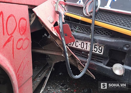 Sang được nửa đường, chiếc xe khách bất ngờ bị 1 chiếc xe ben mang BKS: 37C-011.59 (chưa rõ danh tính tài xế) chạy nhanh lao tới đâm vào phía hông bên trái.