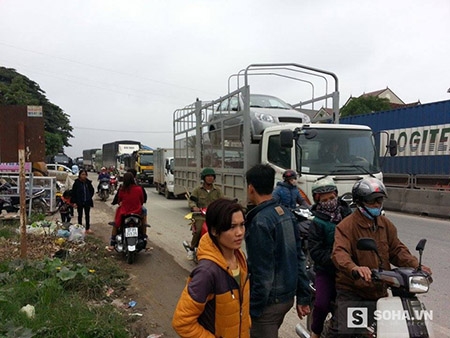 Rất nhiều người dân xung quanh kéo ra xem sự việc khiến giao thông qua đây bị hỗn loạn, ách tắc.