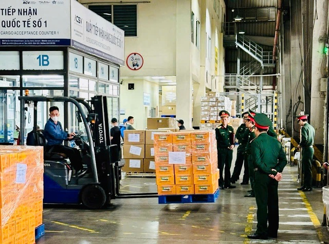 Một vài hình ảnh tập kết hàng hóa viện trợ và công tác soi chiếu an ninh hàng hóa do Cảng hàng không quốc tế Nội Bài cung cấp: