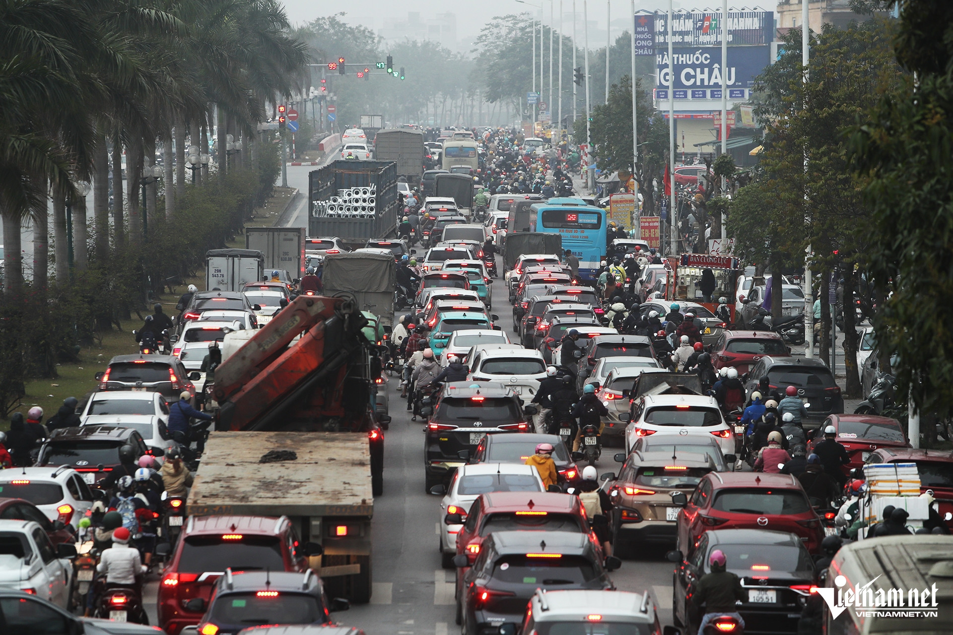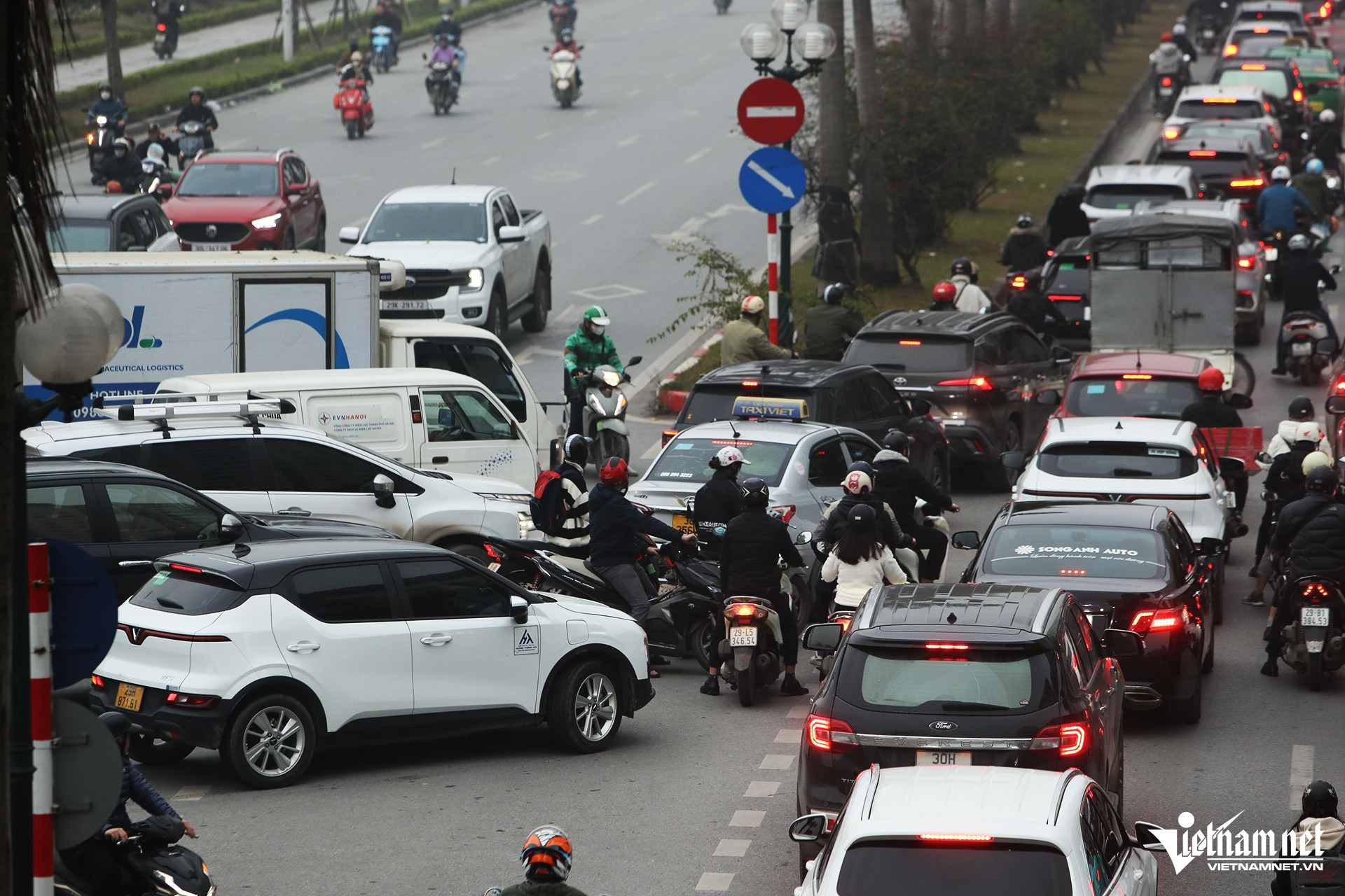 17h ngày 20/2, tại đường Trần Hữu Dực (đoạn qua phường Cầu Diễn, quận Nam Từ Liêm, Hà Nội), dòng phương tiện bị ùn tắc kéo dài khoảng 500m.