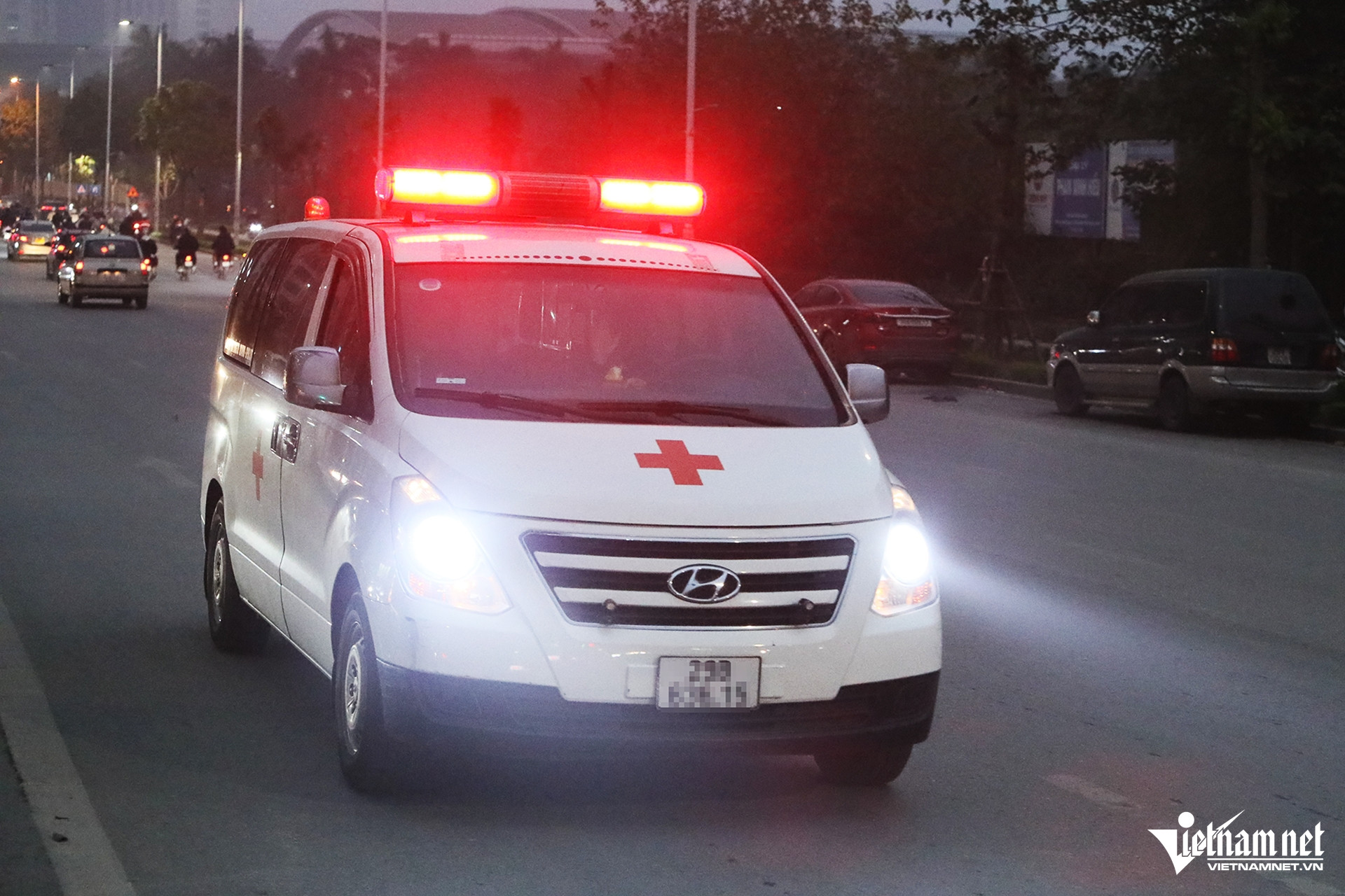 Thời điểm 17h45, một chiếc xe cấp cứu phải đi ngược chiều để vượt qua điểm ùn tắc.