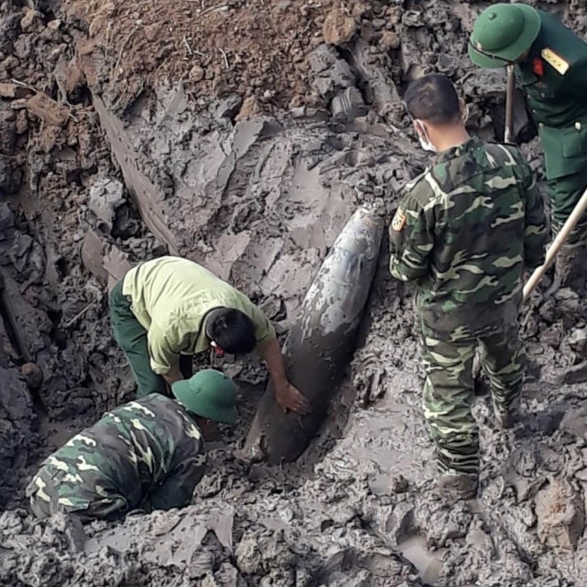Ban Công binh đã kiểm tra, khảo sát, xác định đây là quả bom còn nguyên hình dáng, màu sơn, mã ký hiệu (mã ký hiệu GB 500). Quả bom dài 1,5 m, nặng khoảng 300 kg, đường kính thân 35 cm.