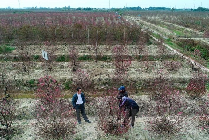 Theo thống kê ban đầu, chỉ còn 10 ngày nữa là đến Tết Nguyên đán nhưng các hộ dân mới bán được 10% tổng số diện tích trồng đào. Ông Đỗ Văn Quế, hộ trồng đào ở phường Tân Hưng, thành phố Hải Dương, cho biết gia đình trồng 5 sào đào với số lượng hơn 400 cây, trong đó hơn 200 cây trồng phục vụ cắt cành bán.