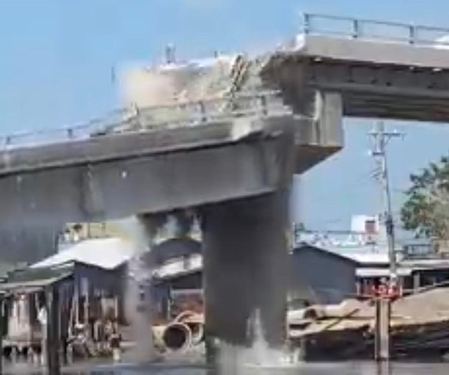 Tại hiện trường, trụ giữa bị lún sâu khoảng 4m, kéo theo sập 2 nhịp giữa. Trong đó, có một nhịp giữa rơi xuống nước, chắn ngang dòng sông Cái Đôi Vàm.